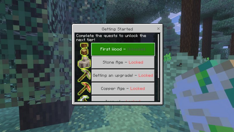 The Quest System is a feature that provides players with quests to complete upon starting a new world. The quests are tiered, and each tier has specific goals for the player to complete. Upon completing a quest, players will receive a reward. Take bounties to hunt down a specific number of mobs for rewards.