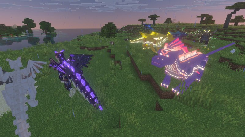 Meet 22 species of dragons in your Minecraft Bedrock. You can hatch them from the eggs to raise yourself a flying mount.