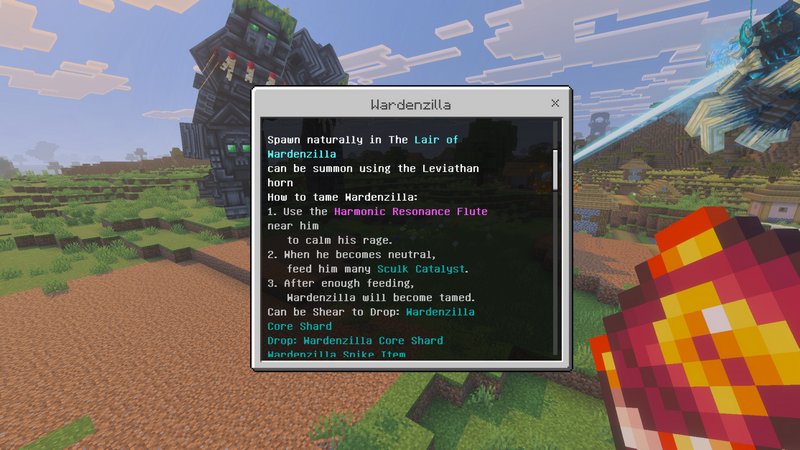 - To Tame Godzilla: Play the Harmonic Resonance Flute near him and feed him a Sculk Catalyst.