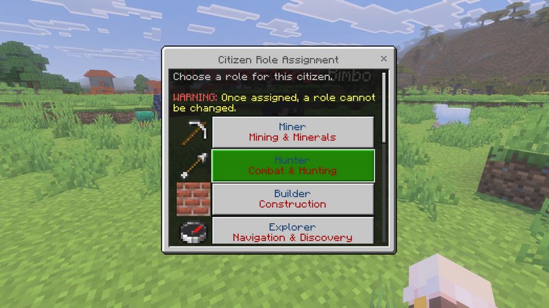 The Mayor’s Table is your central management hub. Here, you can assign ranks to players or hire NPCs for 10 Emeralds each.