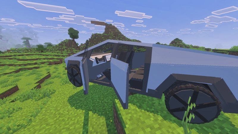If you ever dreamed of driving a Tesla Cybertruck car in Minecraft PE, the addon is right for you. The addon features the car in a grey color that can seat up to seven people. The car has a panoramic roof for you to enjoy the blue sky during your trips.