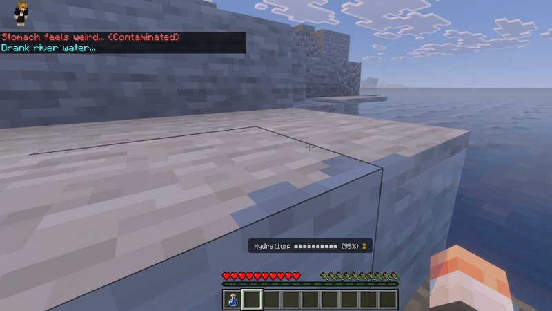 Thirst addon adds another dimension of realism to Minecraft PE by making water consumption obligatory. Before, your character in the game would only experience hunger but no thirst. This is actually funny because the human body can live less without water, than without food.