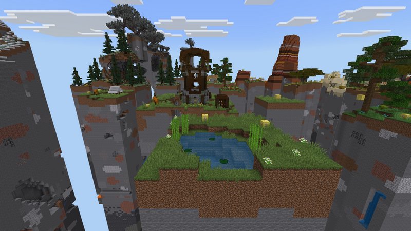 To survive this challenge, you will need both adaptability and luck. Every chunk features a unique theme, ranging from simple biomes to dangerous Illager Outposts. Scattered across these islands are Lucky Blocks, and opening them is not just encouraged – it’s a requirement of the rules!
